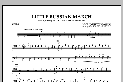 The colorful, tuneful march from Tchaikovsky's second symphony, considered to be one of his most joyous works, makes an ideal teaching piece with its distinctive dotted 8th-16th note figure throughout. The nickname Little Russia was given to the symphony based on its use of Ukrainian folk songs.