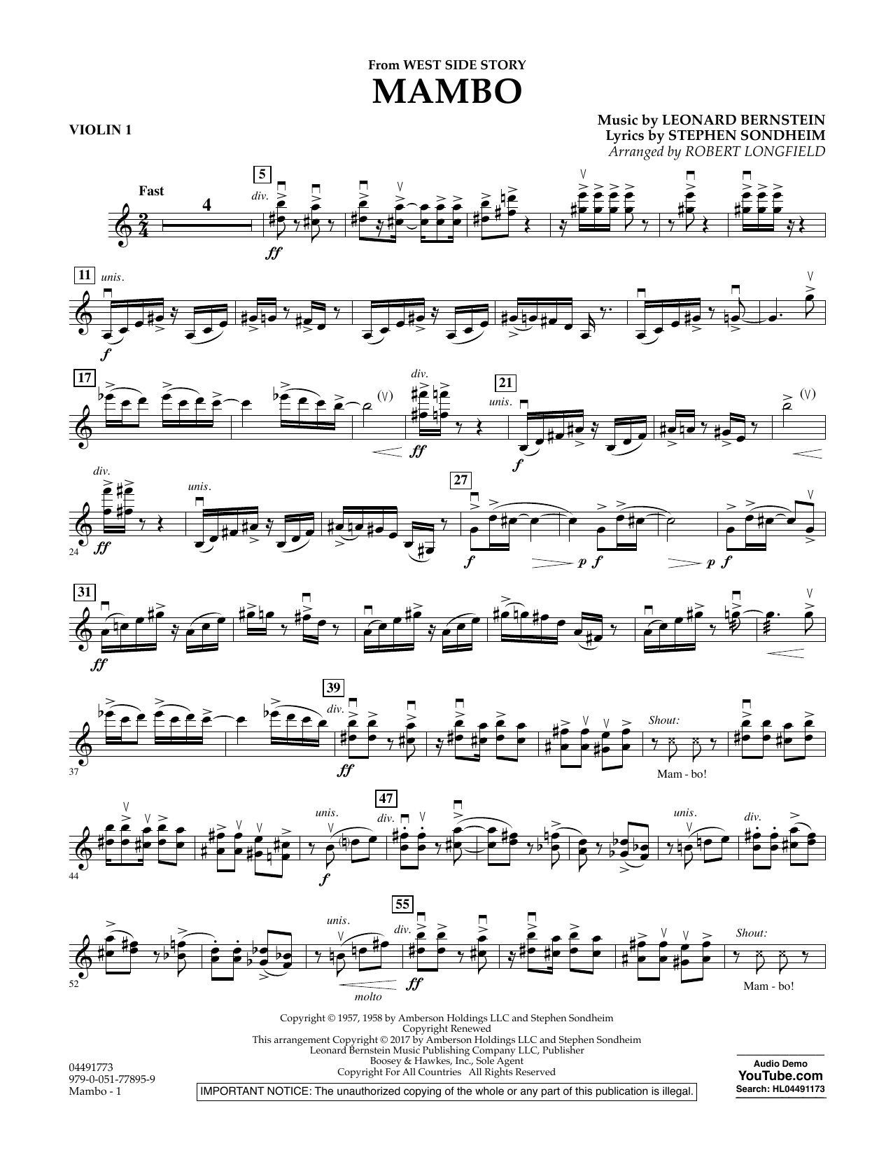 Diese neue Ausgabe für Streichorchester bietet Bernsteins populären Mambo aus seinem wohl größten Musical, der West Side Story. Longfields Arrangement fängt dabei die Authentizität und Energie des Originals wunderbar ein. Ein aufregendes Vorzeigestück für jedes Konzert oder Festival, das sich auch als Zugabe bestens eignet!