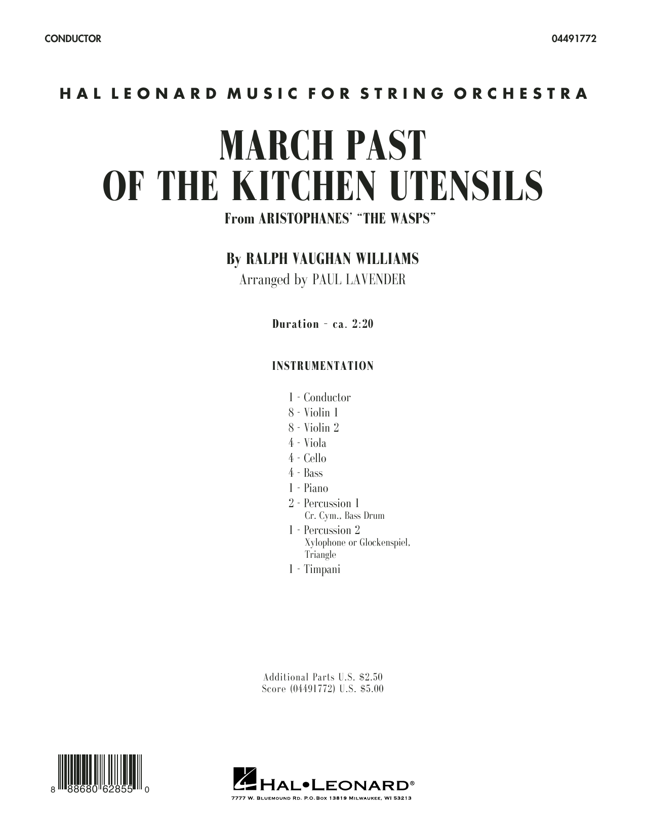 This clever movement is taken from incidental music written for a satirical stage work. Composed early in Williams' career, it reflects his skill with folk-style melodies and orchestration refined by his studies with Ravel. This adaptation is an effective theatrical concert work for mature string orchestras.