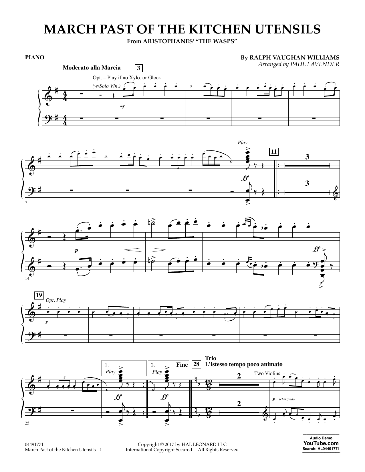 This clever movement is taken from incidental music written for a satirical stage work. Composed early in Williams' career, it reflects his skill with folk-style melodies and orchestration refined by his studies with Ravel. This adaptation is an effective theatrical concert work for mature string orchestras.