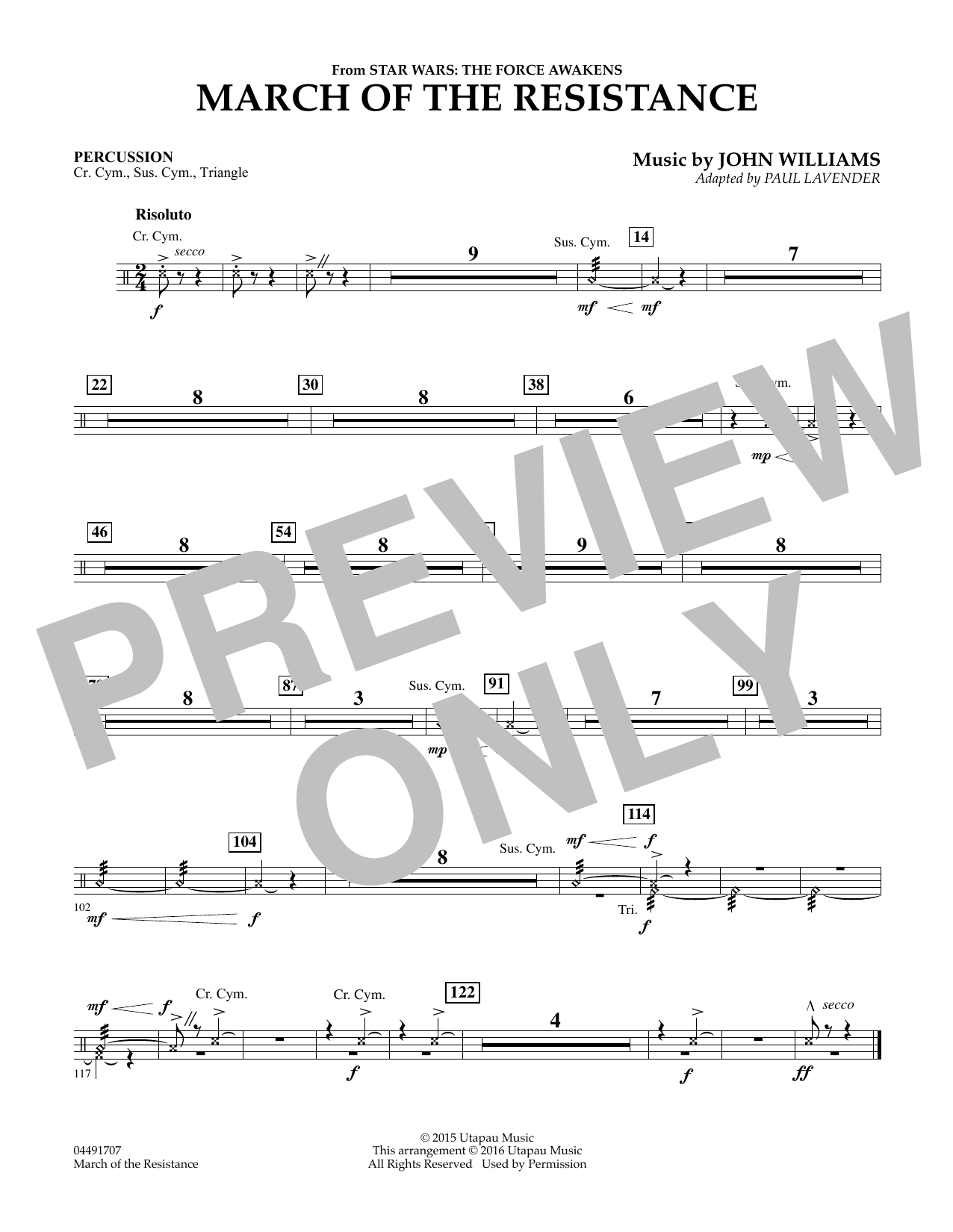 From the blockbuster film Star Wars: The Force Awakens, this distinctive march theme gives string orchestras a terrific concert work that features skilled contrapuntal and fugal style writing. A challenging yet fun experience that mixes early Baroque and Classical style with the power and drama of Star Wars.