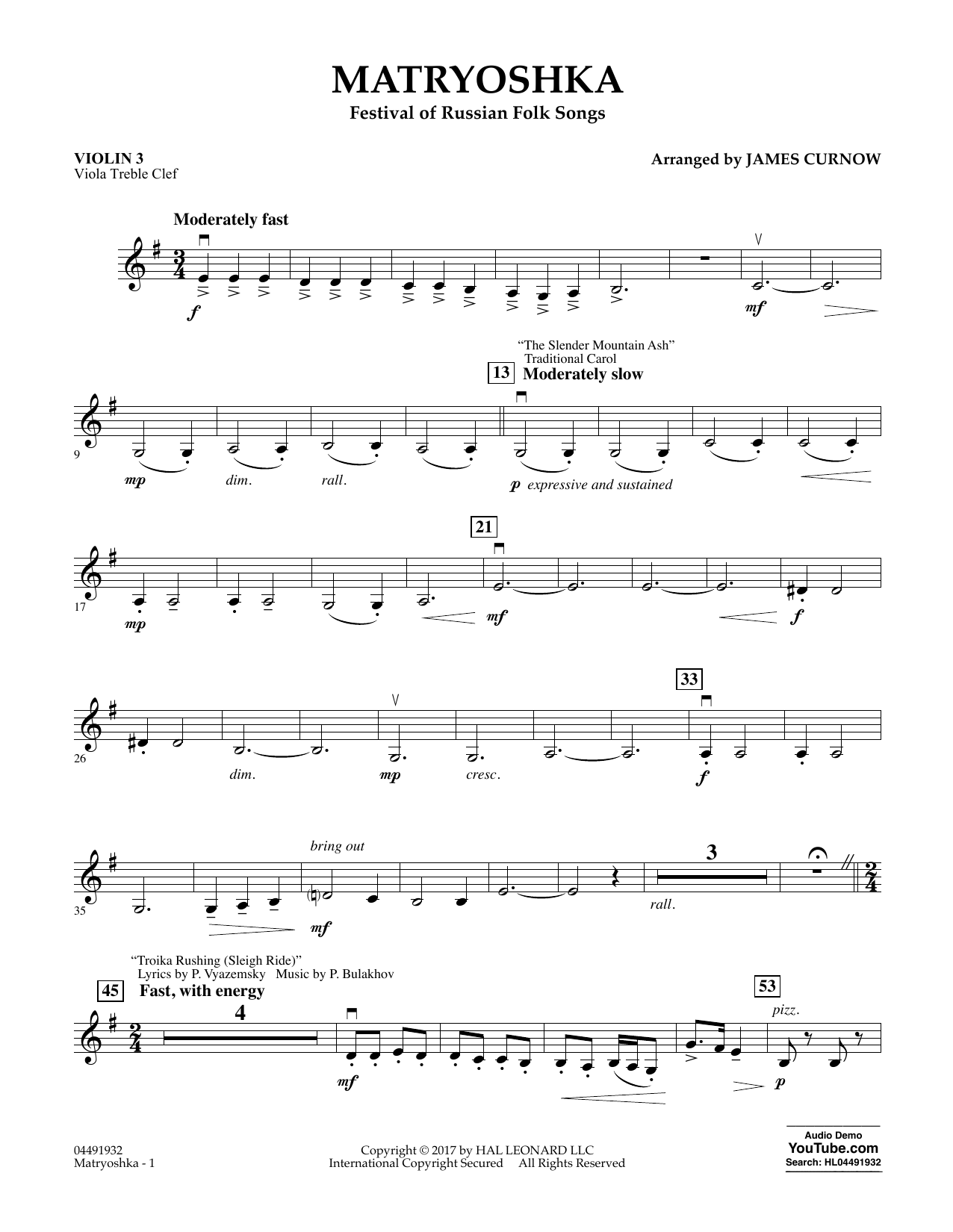 (Festival of Russian Folk Songs) - Violin 3 (Viola Treble Clef)