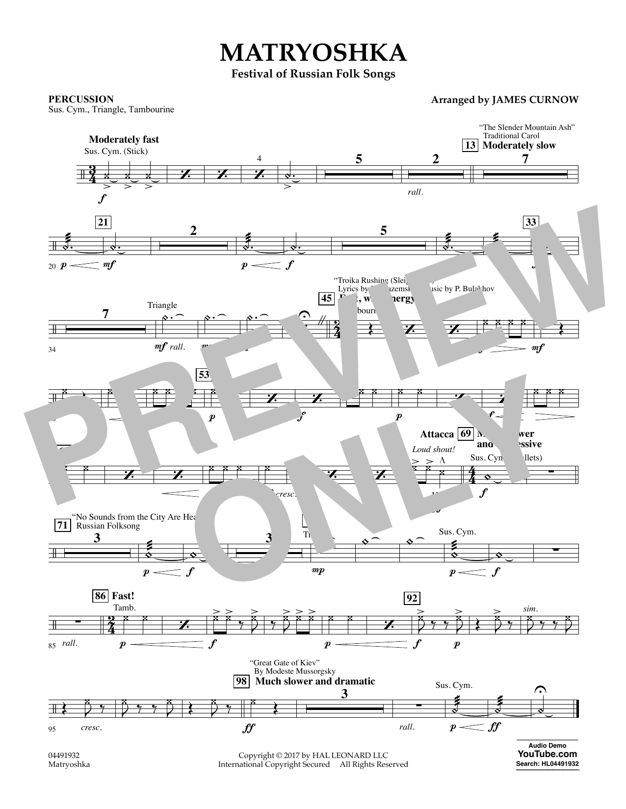 A matryoshka is a Russian doll carved so that smaller ones fit within larger dolls of various sizes. They generally are beautifully hand painted in brilliant colors representative of the Russian peasantry. Matryoshka is a musical composition incorporating three diverse Russian folk songs very much like the Russian dolls...one song following the other.