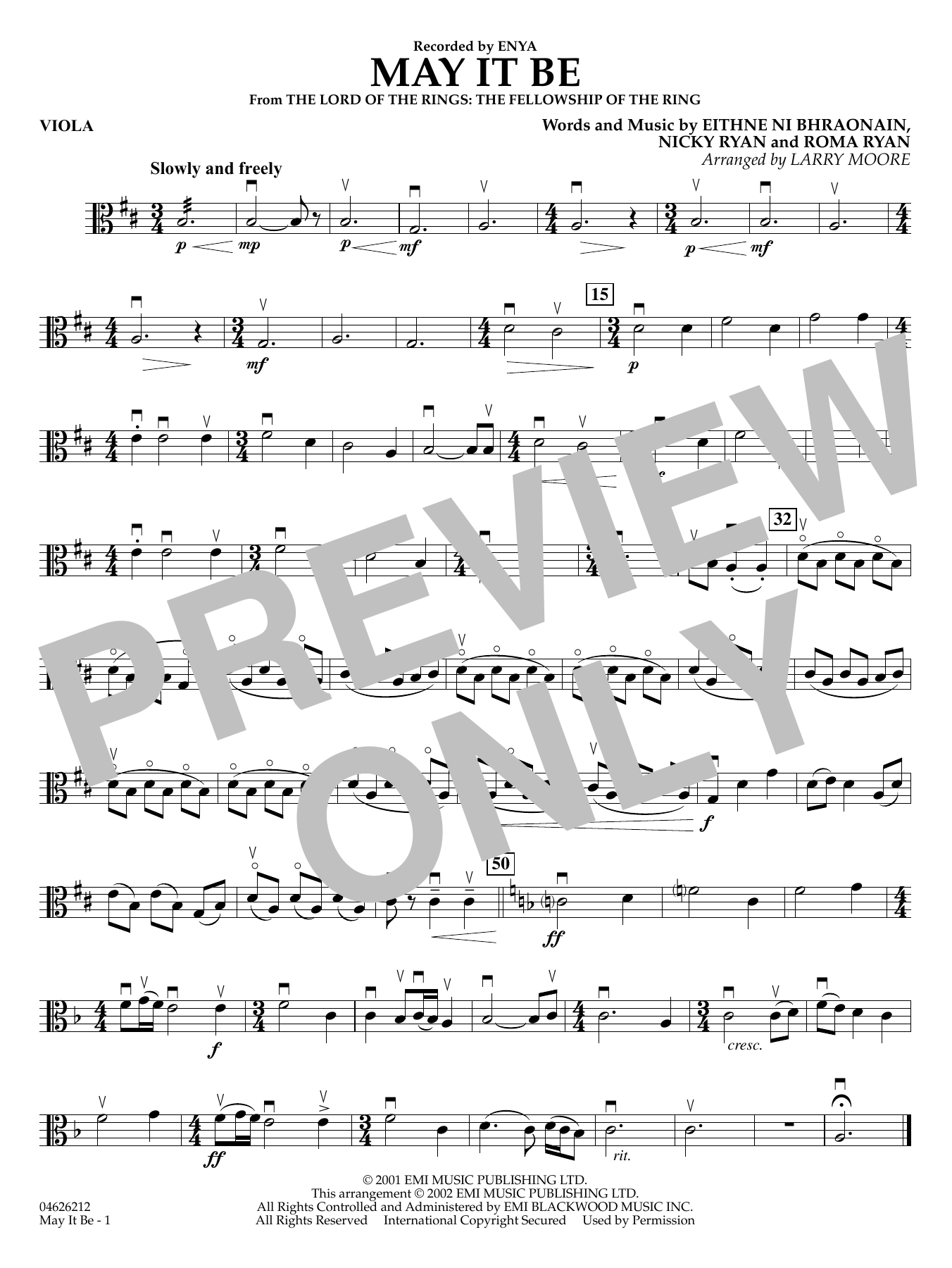 From the blockbuster movie The Lord of the Rings: The Fellowship of the Ring comes this hauntingly beautiful ballad sung by Enya. This easy setting by Larry Moore captures the simple effectiveness of Enya's music and your stringorchestra will want to play this again and again.