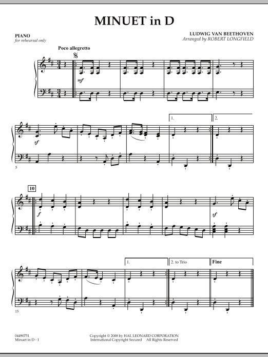 A classical melody that everyone will recognize, Minuet in D also serves as a good chance to teach the important dotted eighth-sixteenth note figure, which Robert has carefully included in all parts. An outstanding teaching and performance piece for younger players.