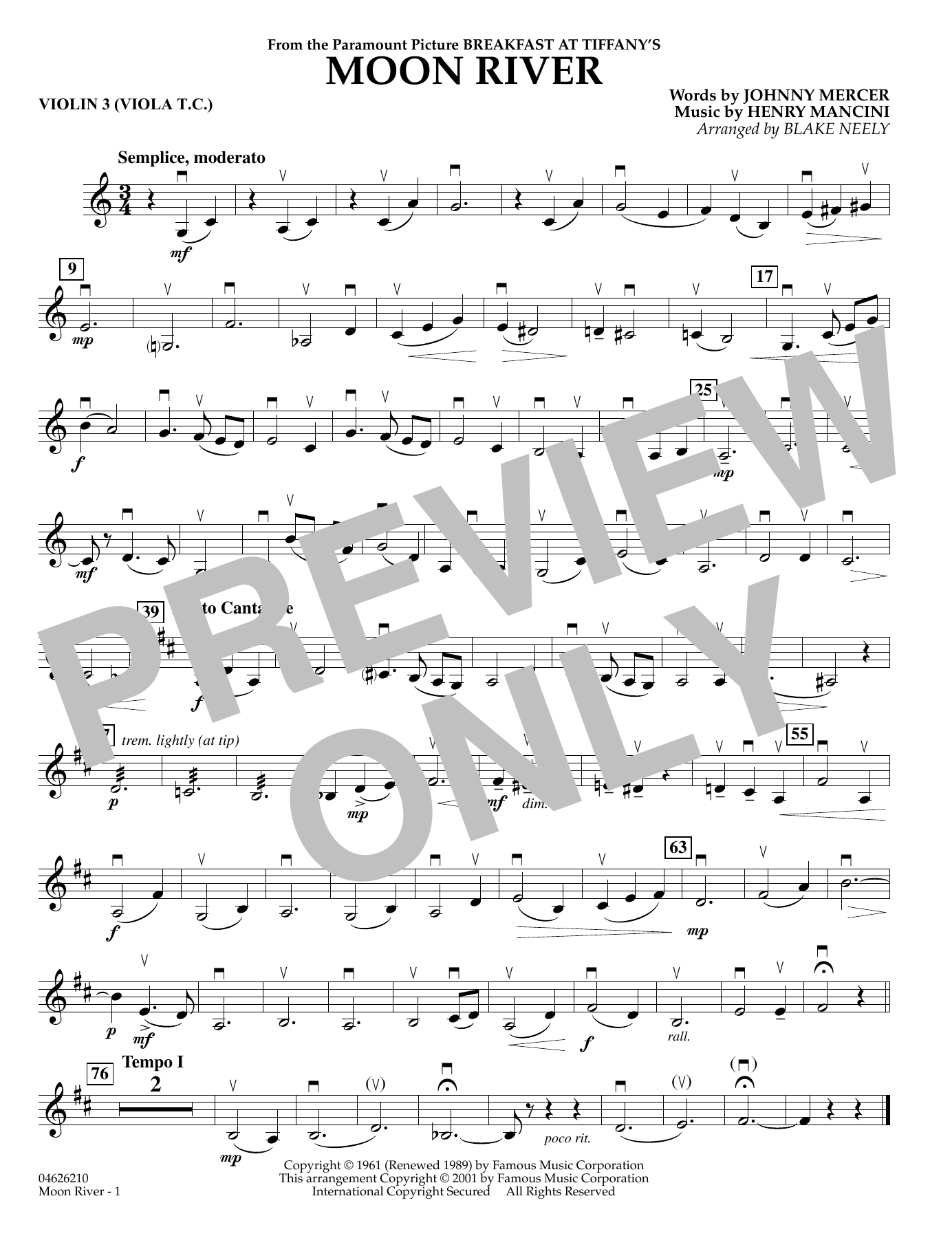 Over the decades, Mercer and Mancini's timeless song from Breakfast at Tiffany's has become a classic American song. This new arrangement for strings brings the simplistic beauty of Mancini's writing to today's string groups.