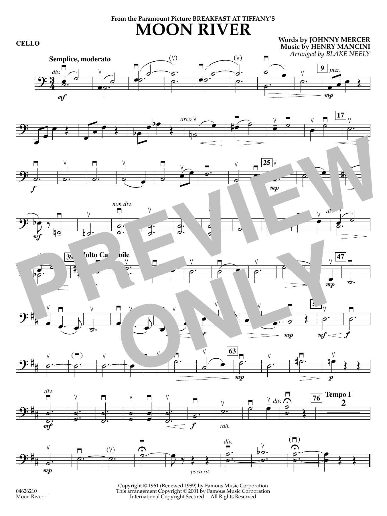 Over the decades, Mercer and Mancini's timeless song from Breakfast at Tiffany's has become a classic American song. This new arrangement for strings brings the simplistic beauty of Mancini's writing to today's string groups.