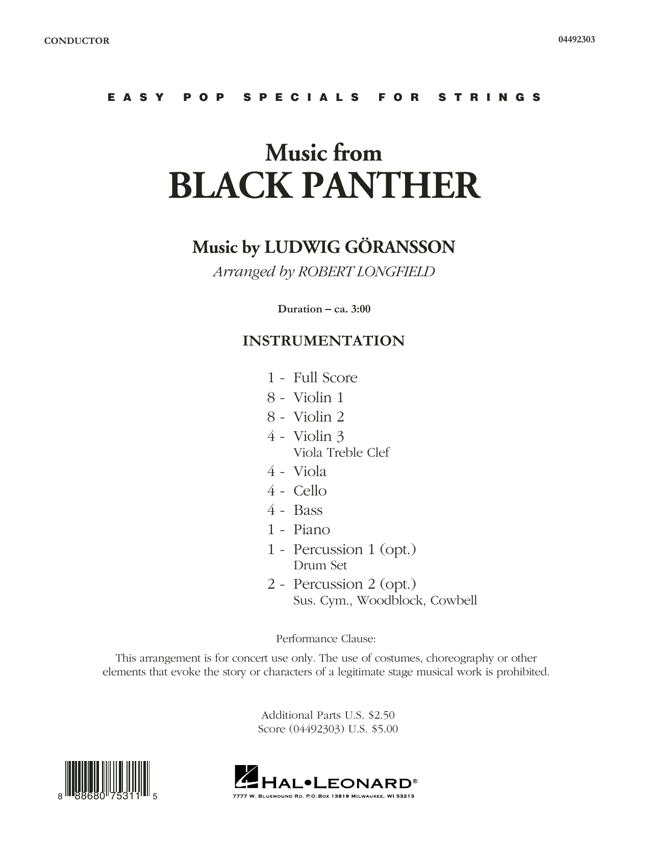 Die Filmmusik für den Blockbuster Black Panther ist so dramatisch und kraftvoll wie der Film selbst. Hier ist eine praktische, zugängliche Fassung der Hauptthemen, sorgfältig arrangiert für Streicher. Enthält Ancestral Plane, Waterfall Fight und United Nations/End Titles.