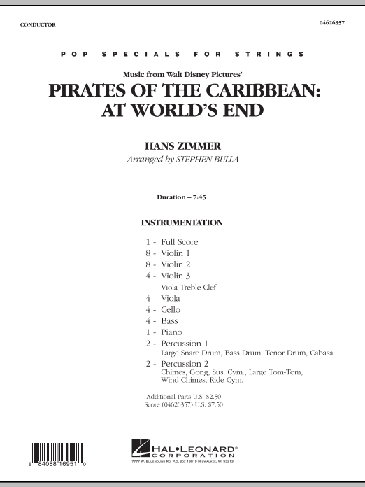 The season's biggest film again features the exploits of Jack Sparrow and his high seas adventures, and Hans Zimmer proves once more why he is a master of film score drama. This medley features new and familar Pirates themes, including Hoist the Colors, Drink Up Me Hearties, I See Dead People in Boats, and Up is Down.
