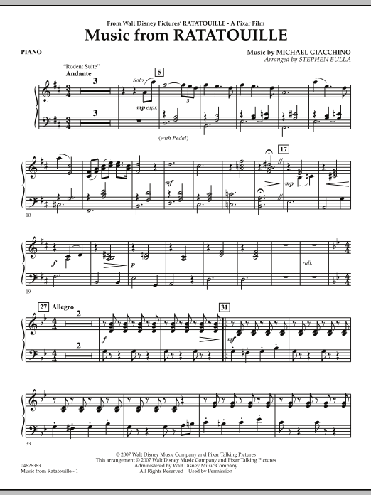 This season's family film from Disney has delighted audiences once again with the imagination and creativity from Pixar Studios. Stephen Bulla has included several of the heartwarming and action themes from this soon-to-be classic.