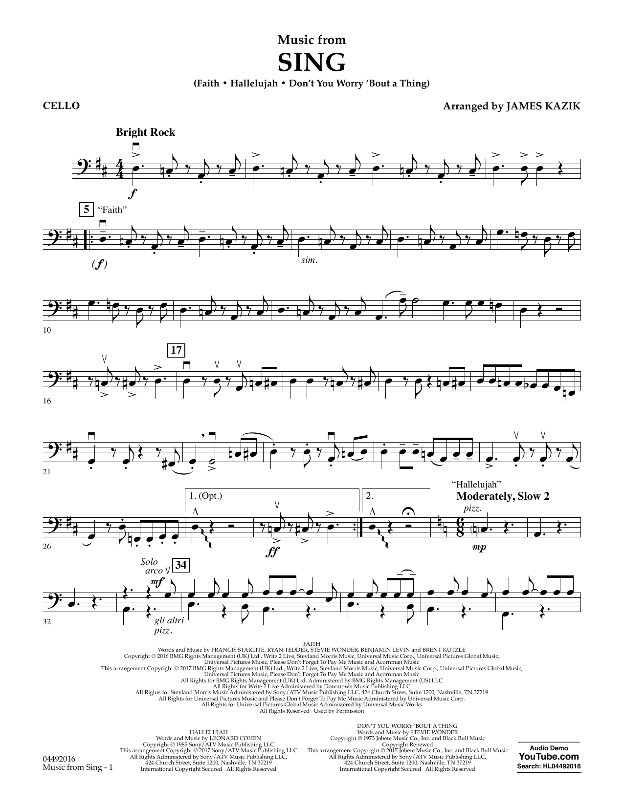 The upbeat animated film Sing features a charming story about a talent show and plenty of terrific music. Here is an appealing medley that includes a new song (Faith) sung by Stevie Wonder and Ariana Grande, along with the classic pop hit Hallelujah (Leonard Cohen) and Stevie Wonder's Don't You Worry 'Bout a Thing.