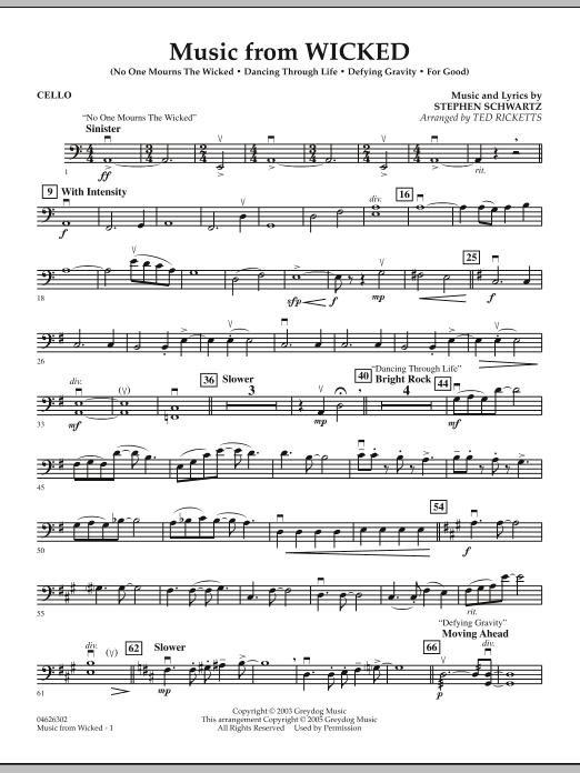 Here is a very playable, yet effectively powerful string orchestra setting of highlights from the hit Broadway musical about the Wicked Witch of the West. Includes: No One Mourns the Wicked, Dancing Through Life, Defying Gravity.