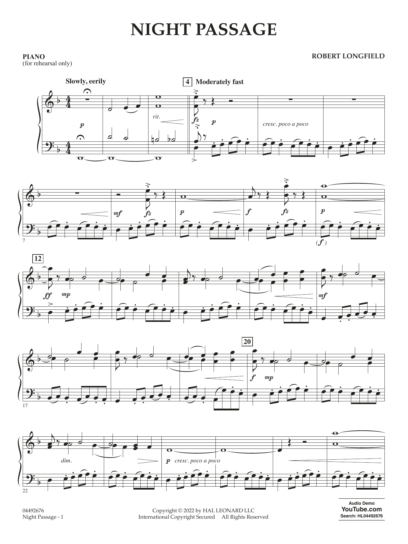 In D minor, this original composition for string orchestra by the established composer Robert Longfield features a refreshingly active part for the low strings under a flowing melody for the violins. A slow middle section contrasts with the high-energy beginning and end. This piece has something for everyone!