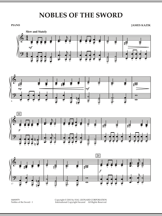 In a stately march tempo, Nobles of the Sword features tonal centers in A minor and C major, and is written in tutti style with ample opportunities to teach common rhythms (including dotted quarter/eighth note).