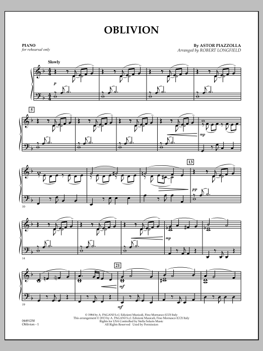 Arranged here for flexible soloist and strings, this haunting melody from Argentine tango composer Astor Piazzolla provides an impressive showcase for a violin, flute, or oboe soloist. Beautifully scored for string orchestra and carefully paced.