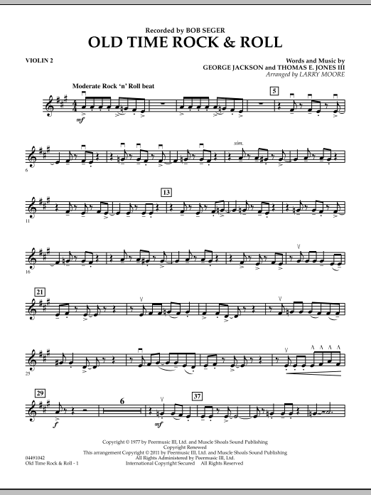 Bob Seger's signature song has become a rock and roll icon with its bluesy melody and driving rock groove. Larry Moore's solid arrangement makes it fun and playable for your string players' pop performances.