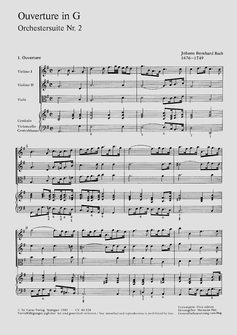 Ouverture in G - 2 Vl, Va, Vc/Cb, Cemb