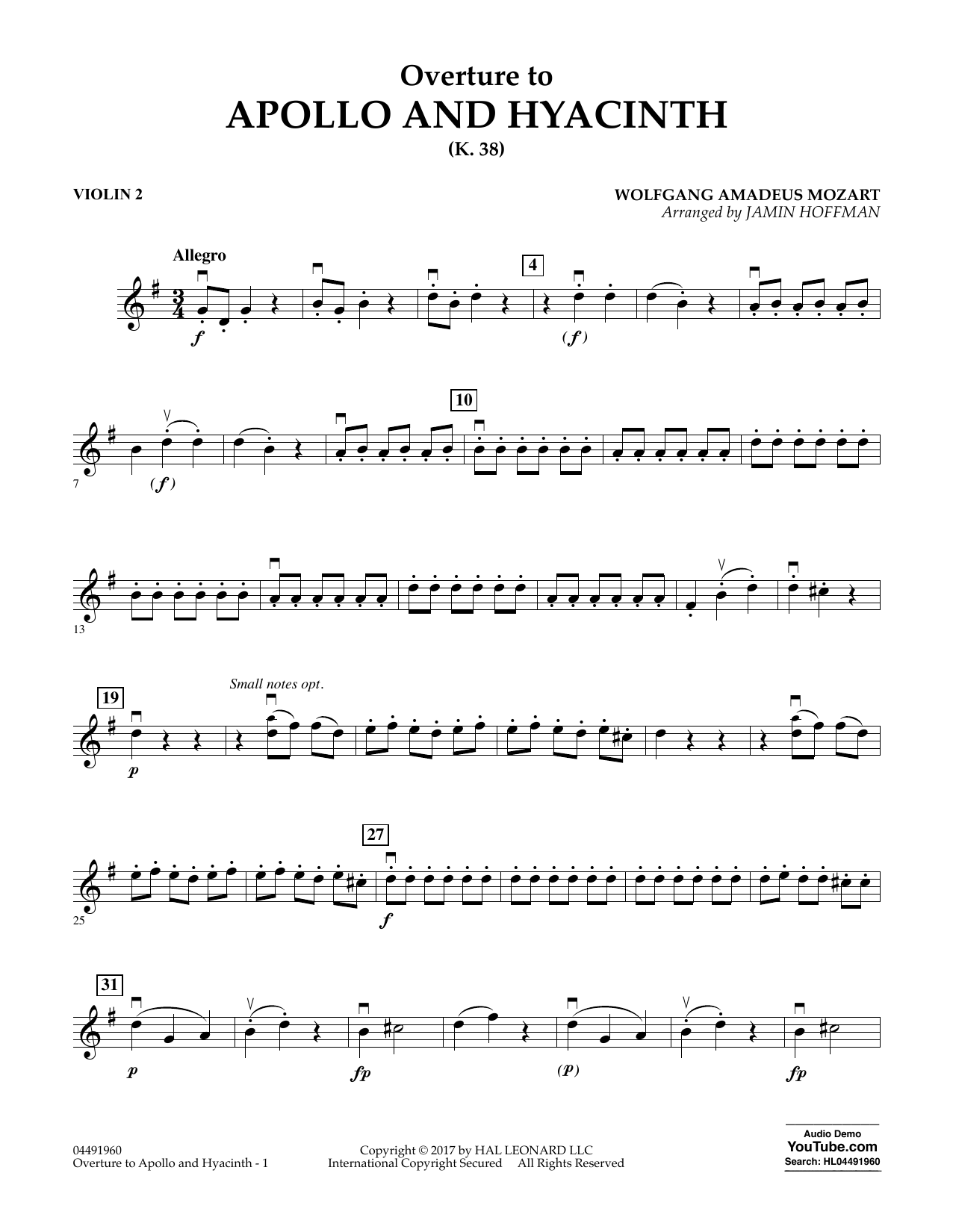 This simplified arrangement of the overture to Apollo et Hyacinthus (possibly Mozart's first real opera) works very well for young orchestras, with lots of juicy, fun passages for all the instruments.