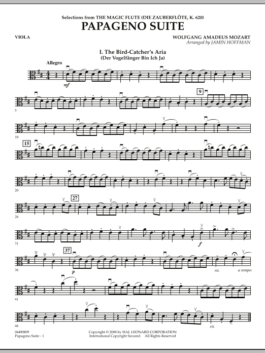 Here's a suite of three of the most charming arias from The Magic Flute (The Bird Catcher's Aria, Either Girlfriend or Young Wife, and Pa-pa-pa-pa); instantly recognizable, with solos for violin and cello, as well as optional parts for solo recorder, flute or piccolo, glockenspiel, and violin (also playable with string orchestra only).