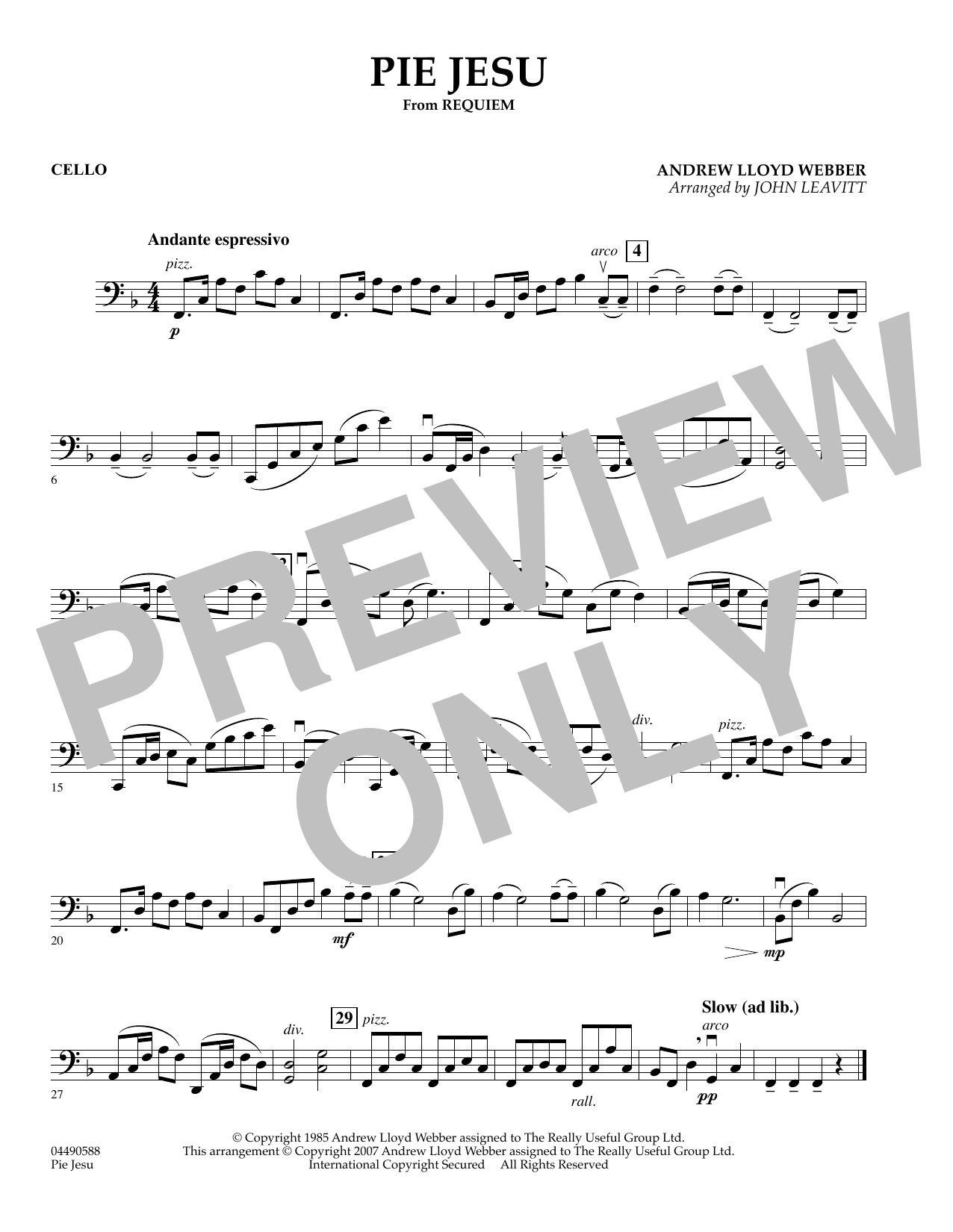 The most notable musical moment from Webber's Requiem is captured beautifully in this new arrangement for strings by John Leavitt. Skillfully written with musical sensitivity and taste, John's continuing success as an orchestral arranger is apparent with each and every publication.