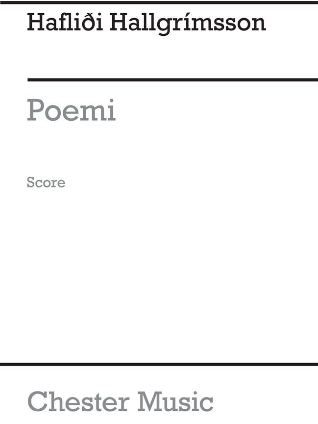 Poemi is based on three allegorical paintings by Marc Chagall, each of which is a masterly depiction of a well-known text the Old Testament: The Dream of Jacob, The Sacrifice of Isaac and Jacob in Combat with the Angel. Hallgrimsson's intention in writing the work was to compose a virtuoso piece for violin and string orchestra, which would recreate in music the poetic essence of Chagall's paintings. The soloist is at the centre of the 'musical stage' throughout, with the orchestra providing a constantly changing 'scenery'. The music progresses from the tranquillity of the Dream in the first movement, through the drama of the Sacrifice in the second, to the fast and tense Combat with the Angel which forms the final movement. 'Poemi' was awarded the Nordic Council Prize in March 1986.