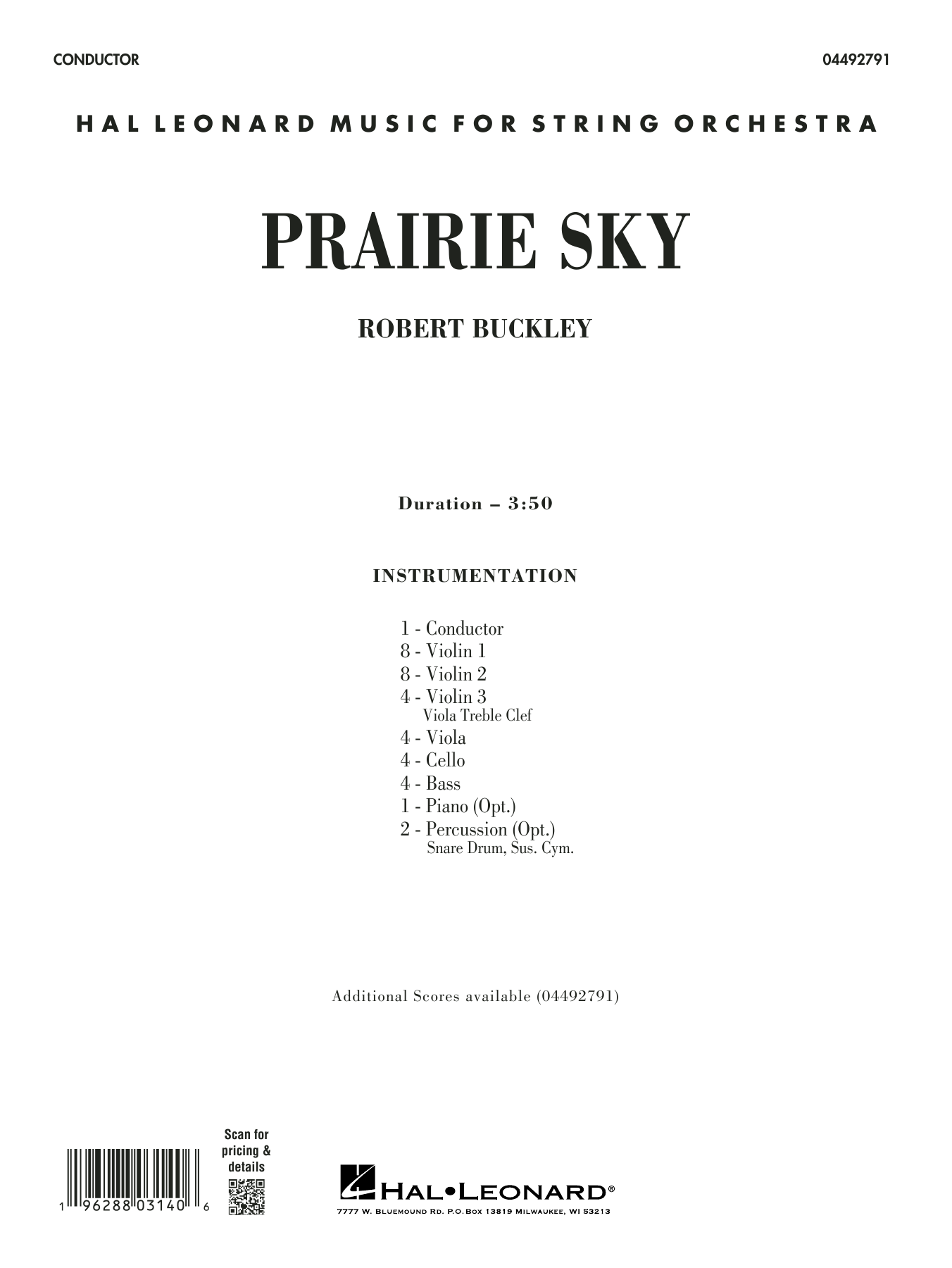 Let your strings soar through the expanse of the Prairie Sky by Robert Buckley. This energetic composition captures the beauty and majesty of open landscapes. With a contrasting slower middle section, lush harmonies, and sweeping syncopated melody, Prairie Sky transports performers and audiences alike to the heart of nature's splendor. Elevate your ensemble's repertoire with the captivating allure of Prairie Sky and create a memorable performance!