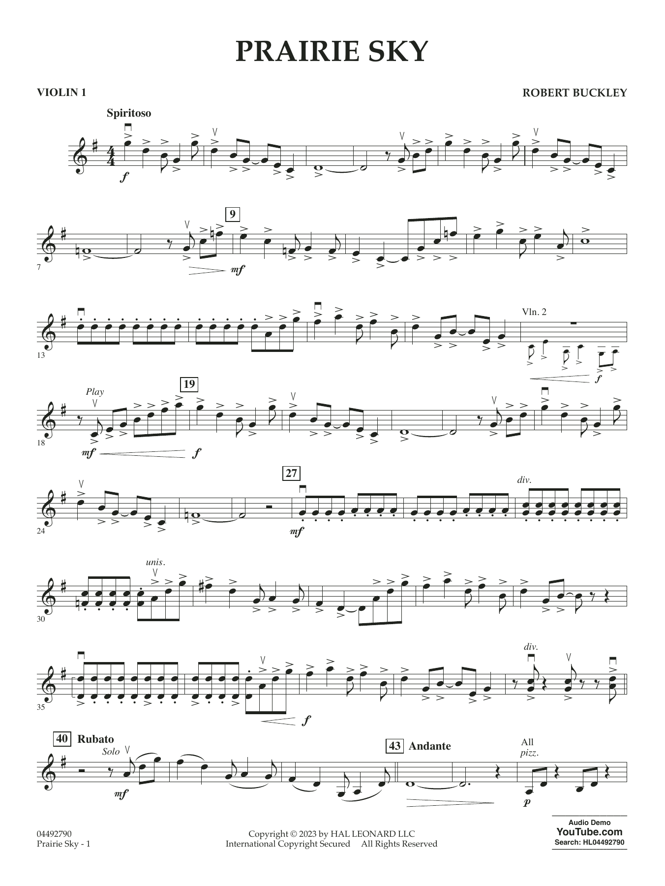 Let your strings soar through the expanse of the Prairie Sky by Robert Buckley. This energetic composition captures the beauty and majesty of open landscapes. With a contrasting slower middle section, lush harmonies, and sweeping syncopated melody, Prairie Sky transports performers and audiences alike to the heart of nature's splendor. Elevate your ensemble's repertoire with the captivating allure of Prairie Sky and create a memorable performance!