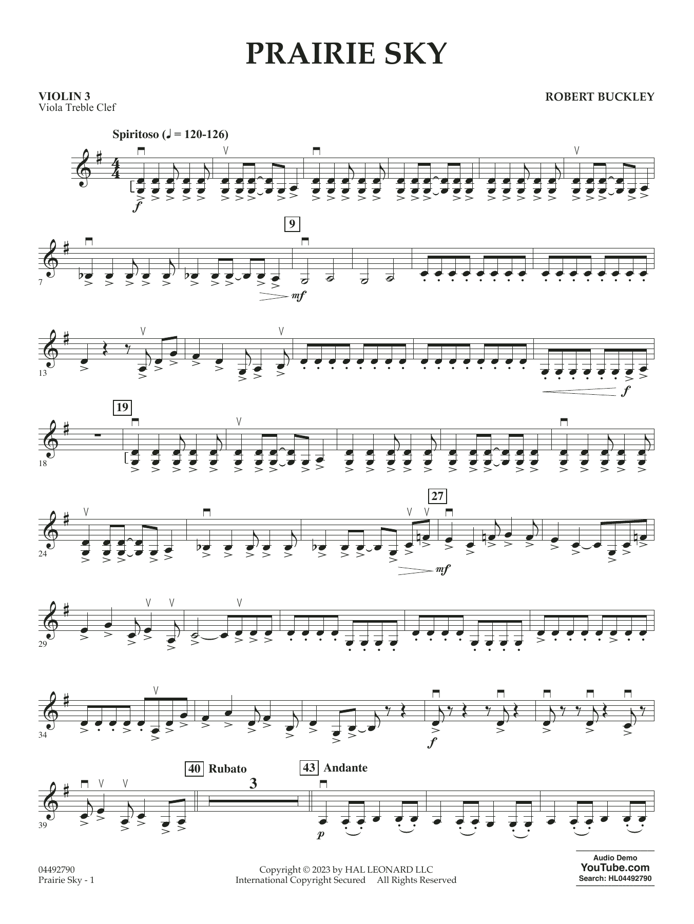 Let your strings soar through the expanse of the Prairie Sky by Robert Buckley. This energetic composition captures the beauty and majesty of open landscapes. With a contrasting slower middle section, lush harmonies, and sweeping syncopated melody, Prairie Sky transports performers and audiences alike to the heart of nature's splendor. Elevate your ensemble's repertoire with the captivating allure of Prairie Sky and create a memorable performance!