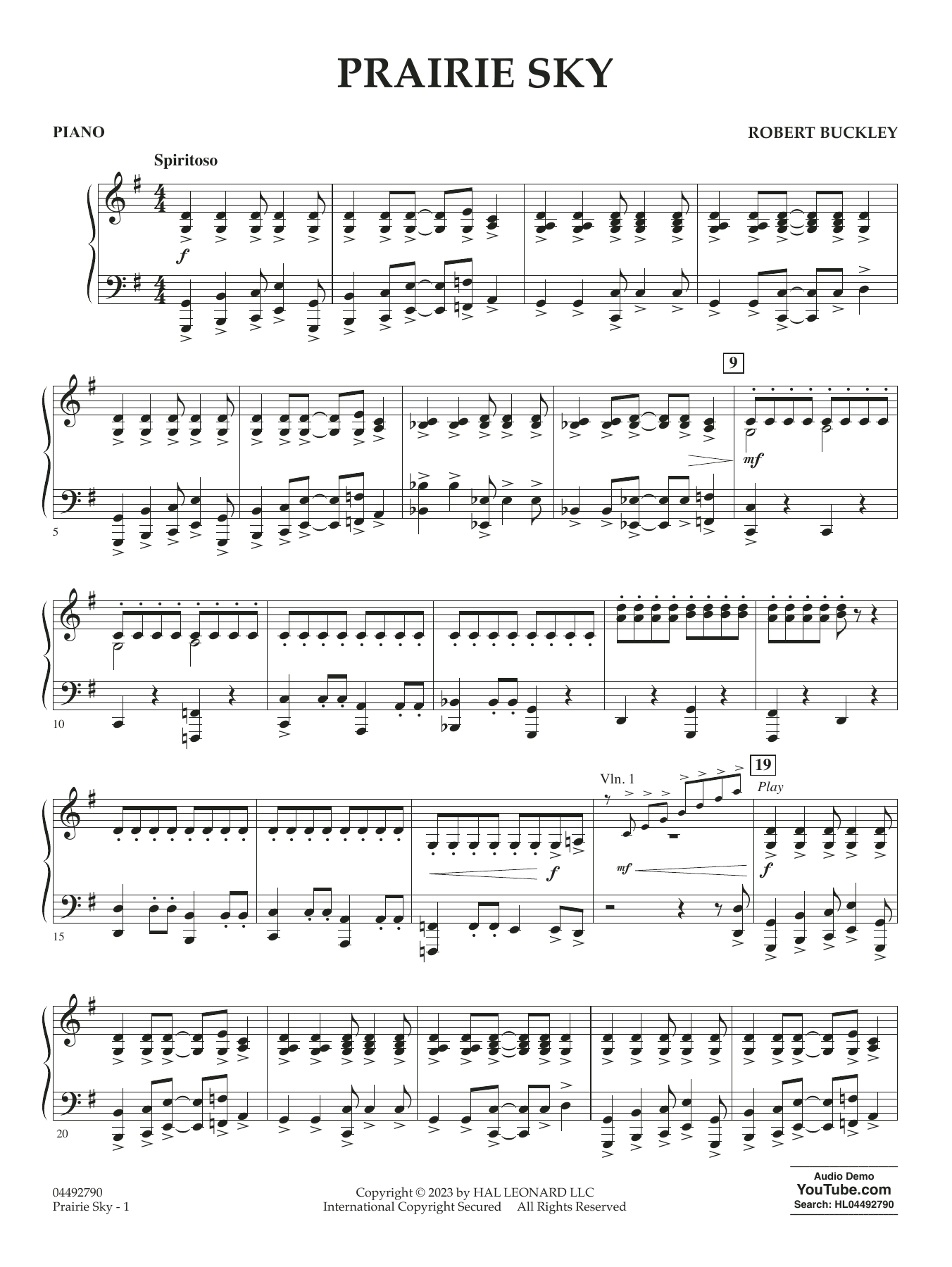 Let your strings soar through the expanse of the Prairie Sky by Robert Buckley. This energetic composition captures the beauty and majesty of open landscapes. With a contrasting slower middle section, lush harmonies, and sweeping syncopated melody, Prairie Sky transports performers and audiences alike to the heart of nature's splendor. Elevate your ensemble's repertoire with the captivating allure of Prairie Sky and create a memorable performance!