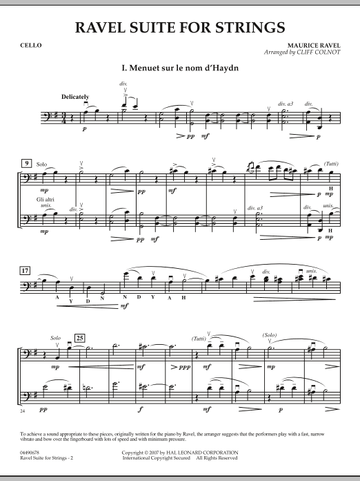 Der erfahrene Orchesterdirigent und -autor Cliff Colnot hat eine einzigartige Reihe von Veröffentlichungen mit Partituren speziell für Schülergruppen mit unterschiedlichen Schwierigkeitsgraden geschaffen. Mit anspruchsvollen Stimmen für eine Solovioline und ein Solocello, unterstützt durch Mittelstufenstimmen für das Ensemble und vereinfachte Bassstimmen, sind diese hervorragenden Arrangements ideal für viele Schülergruppen. Zu den Liedern, die aus drei Klavierstücken stammen, gehören: Menuet sur le nom d'Haydn, La Vallee des cloches (aus Miroirs) und A la maniere de Borodine (Valse).
