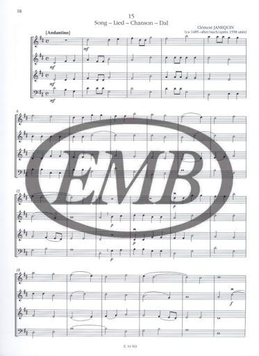 The volumes in the Leggierissimo series, each containing works by a different composer, are now followed by albums presenting easily playable music from the various historical periods: renaissance, baroque, Viennese classicism and romanticism. The selection of renaissance music includes not only instrumental dances but also transcriptions of what were originally vocal pieces (well-known chansons). The volume also contains dance movements that can be paired together, and for individual performances cycles of several movements can be assembled from pieces taken from the same collection.