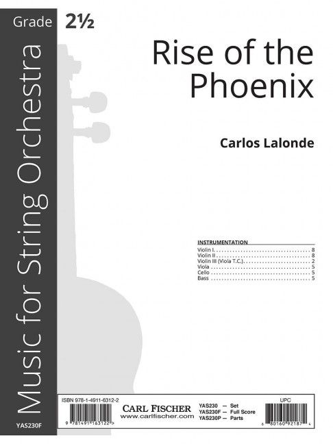 Der mythische Phönix symbolisiert die Wiedergeburt und das Auferstehen aus der Asche. In diesem Stück wird ein rhythmisches Motiv erforscht, das im Laufe der Entwicklung an Schwung gewinnt, dann wieder abklingt, bevor es sich zu noch größeren Höhen aufschwingt. Das feurige Thema, das in e-Moll mit Vorzeichen in Des-Moll steht, verwendet akzentuierte Begleitungen und dramatische Dynamik, um Intensität aufzubauen. Eine kurze lyrische Pause ermöglicht es den Spielern, vierstimmige Bindebögen mit optionalen Verschiebungen in der ersten Violine zu üben. Dann kehrt das Anfangsthema mit noch größerem Feuer zurück und steigert sich zu einem glorreichen Finale.