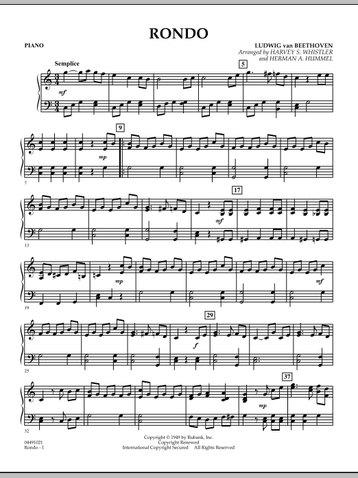 An elegant dance in 3/4 time, this Beethoven minuet is a great vehicle for teaching about rondo form. The episodes between the refrains are short - just four measures in most cases - so students hear the recognizable melody moreoften and understand the concept quicker. Its early classical style also makes it a perfect choice for concert programs.