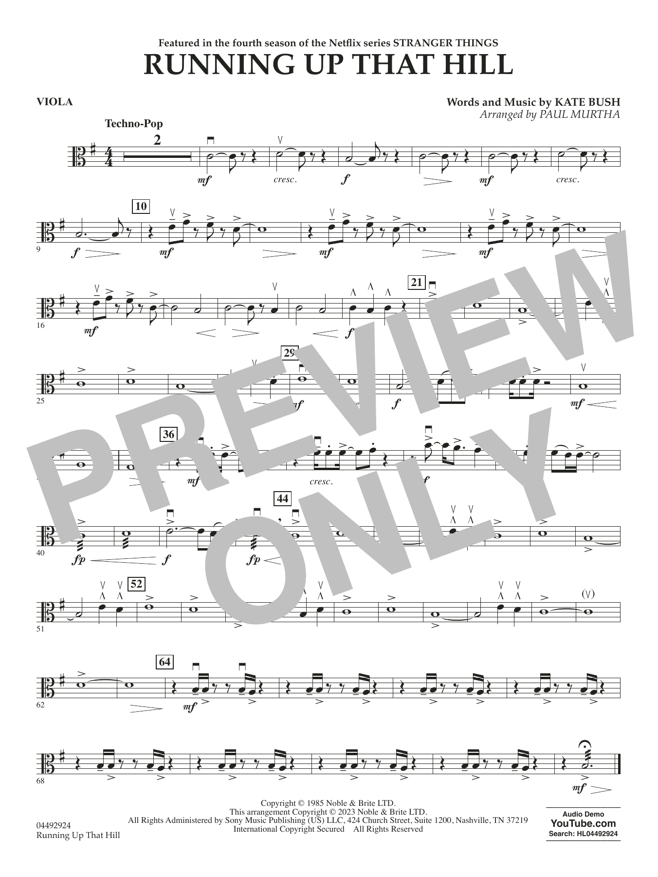 Das Wiederaufleben dieses Hits aus dem Jahr 1985 gibt einer neuen Generation von Musikern die Möglichkeit, die Kraft und Emotion von Kate Bushs Running Up That Hill in diesem Arrangement für Streichorchester von Paul Murtha zu erleben. Mit seinen treibenden Rhythmen und seiner stimmungsvollen Atmosphäre hinterlässt Running Up That Hill einen bleibenden Eindruck bei Interpreten und Publikum gleichermaßen. Erweitern Sie Ihr Repertoire mit diesem kraftvollen Arrangement und schaffen Sie eine unvergessliche Aufführung für Interpreten und Publikum gleichermaßen!