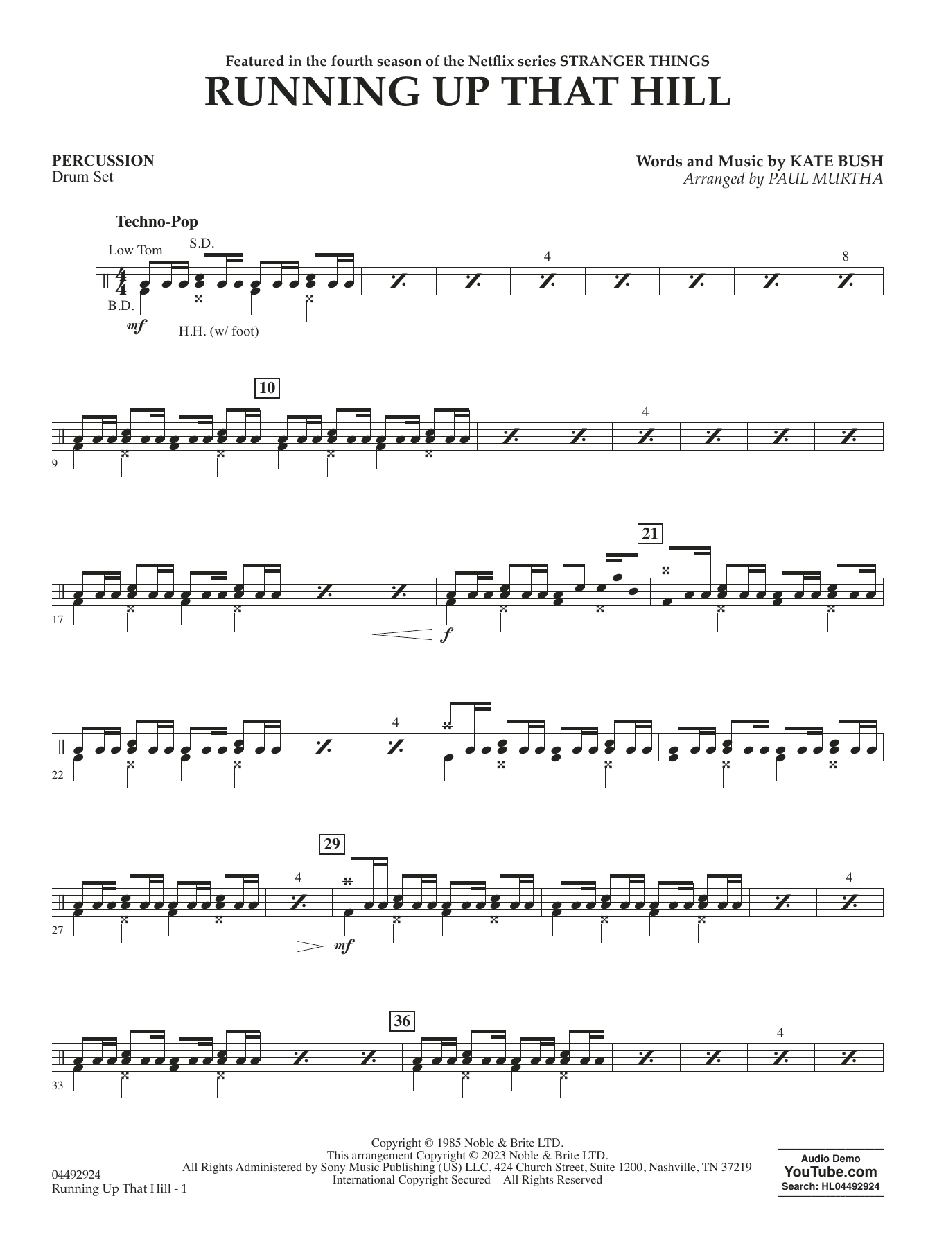 Das Wiederaufleben dieses Hits aus dem Jahr 1985 gibt einer neuen Generation von Musikern die Möglichkeit, die Kraft und Emotion von Kate Bushs Running Up That Hill in diesem Arrangement für Streichorchester von Paul Murtha zu erleben. Mit seinen treibenden Rhythmen und seiner stimmungsvollen Atmosphäre hinterlässt Running Up That Hill einen bleibenden Eindruck bei Interpreten und Publikum gleichermaßen. Erweitern Sie Ihr Repertoire mit diesem kraftvollen Arrangement und schaffen Sie eine unvergessliche Aufführung für Interpreten und Publikum gleichermaßen!