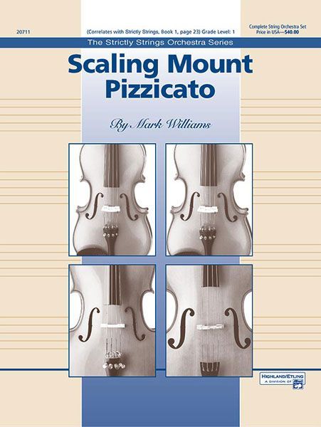 Using only quarter notes and a one-octave D major scale, this fun piece depicts the 'two steps forward, one step backwards' approach typical in mountain climbing. Utilizing both loud and soft pizzicato, students move up and down the various scale patterns, providing great practice in an enjoyable musical setting. This piece correlates with page 23 of Strictly Strings, Book 1, and can be performed as soon as students have mastered their basic one-octave D major fingerings. An excellent first concert selection.