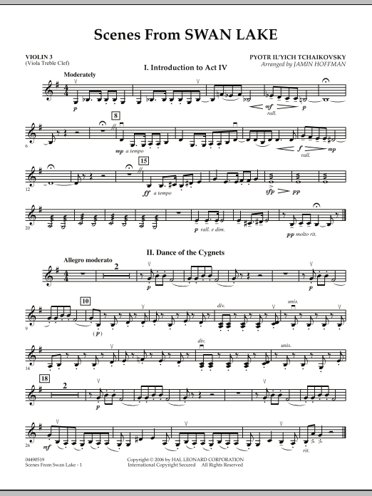 Jamin Hoffman's miniature suite highlights the dramatic introduction to Act IV, 'Dance of the Cygnets, ' and the emotional finale from what may be the most famous of all Tchaikovsky ballets. A true masterwork in this new arrangement for string orchestra that is sure to be an audience pleaser!