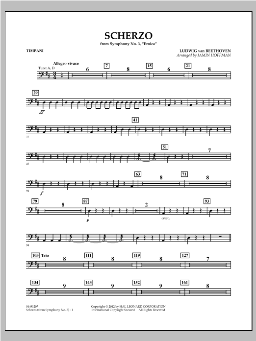 Once again, Jamin Hoffman brings us a skilled adaption of a Beethoven symphony scherzo, this time from the beloved Eroica Symphony. The string writing is ideal for student orchestras and gives an opportunity to perform one of the great treasures of the classical symphonic repertoire, and a work that helped define elements of the coming Romantic period.