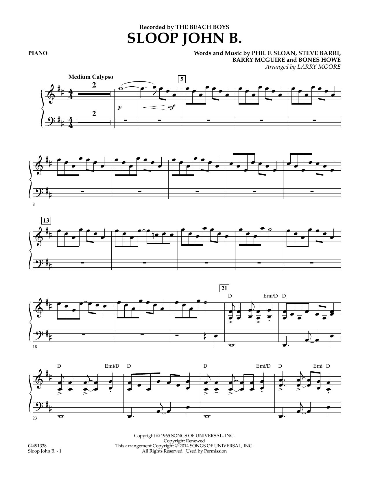 Der klassische Folksong, ein karibischer Calypso im mittleren Tempo, wurde von vielen Künstlern aufgenommen, von Harry Belafonte über das Kingston Trio bis zu den Beach Boys. Larry Moores gut durchdachtes Arrangement ist ideal für den Unterricht und die Programmierung junger Spieler.
