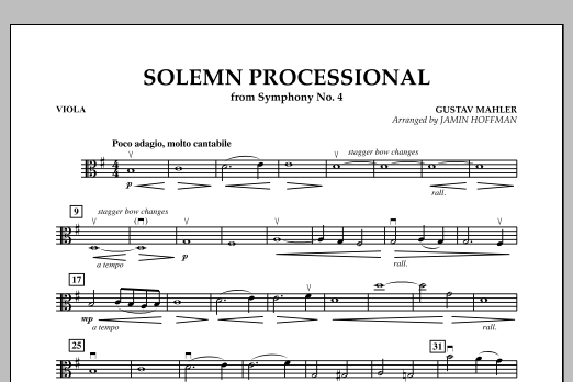 Taken from the third movement of Mahler's most performed symphony, Solemn Processional is based on his song Heavenly Life. This glorious hymn-like processional highlights sustained ensemble playing and features pizzicato bass throughout.