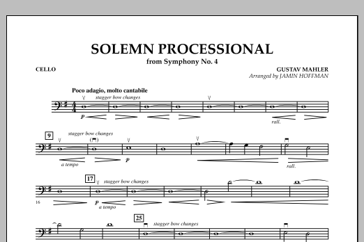 Taken from the third movement of Mahler's most performed symphony, Solemn Processional is based on his song Heavenly Life. This glorious hymn-like processional highlights sustained ensemble playing and features pizzicato bass throughout.