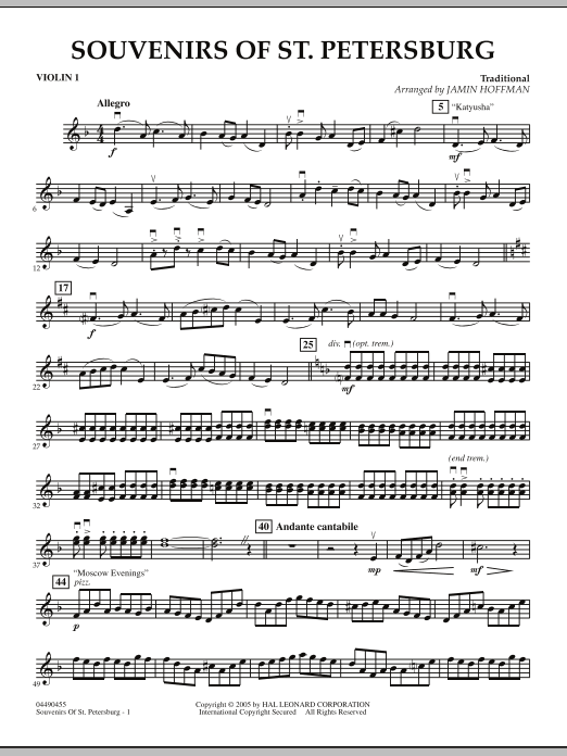 This medley of folk songs came from a recent trip to Russia by arranger Jamin Hoffman. Katyusha, Moscow Evenings, and Kalinka are all rich in tradition, each with a distinctive taste of the land that has given the world so much important music.