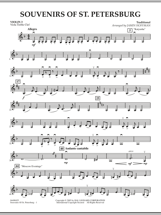 This medley of folk songs came from a recent trip to Russia by arranger Jamin Hoffman. Katyusha, Moscow Evenings, and Kalinka are all rich in tradition, each with a distinctive taste of the land that has given the world so much important music.