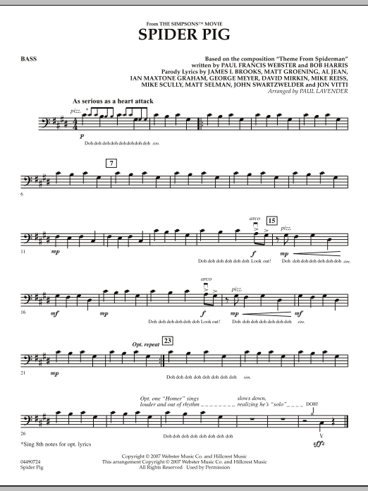 Only the creators of the Simpsons could dream up such a tune! As heard over the end credits, this 'legit' work is sung by a skilled choral ensemble, but with a new libretto to the tune of the original Spider-Man theme. Paul Lavender's version for strings also includes the lyrics for those players who can't help themselves from singing along.