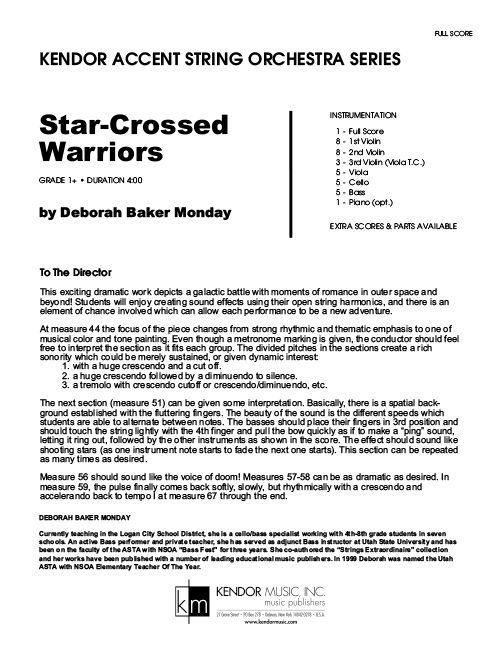 This creative original depicts a galactic battle infused with tender moments in outer space and beyond! Students will really enjoy using their open-string harmonics to create special sound effects -- it is this element of unpredictability that will make every performance a new and exciting adventure. Duration 4:00.
