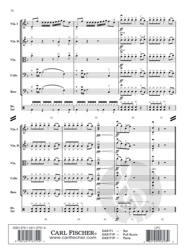 Entfachen Sie ein Feuer in Ihrem Orchester mit diesem elektrisierenden Musikerlebnis! Eine treibende Basslinie und eine kräftige 16tel-Begleitung katapultieren das temperamentvolle Thema. Akzentuierte Akkorde und dramatische Dynamik lassen die Energie des Themas von Abschnitt zu Abschnitt sprießen. Inspiriert von legendären Bands wie AC/DC und Metallica, kombiniert dieses Stück die Kraft eines treibenden Schlagzeugs mit einprägsamen Streichermelodien und bietet Möglichkeiten für Soli und Improvisationen.