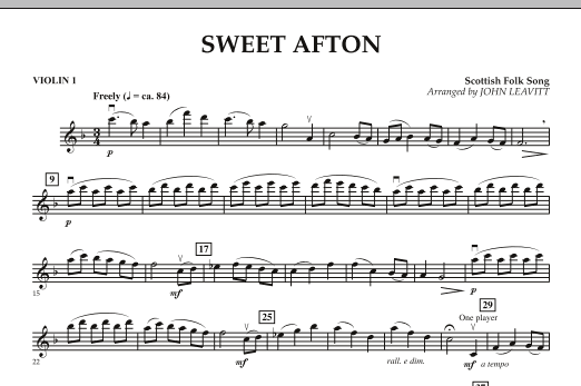 A simple diatonic melody that lends itself well to John Leavitt's unique styling for strings, Sweet Afton also features moments for a quartet within the string ensemble. Once again Mr. Leavitt has provided us with a simple yet artistic work for young string groups.