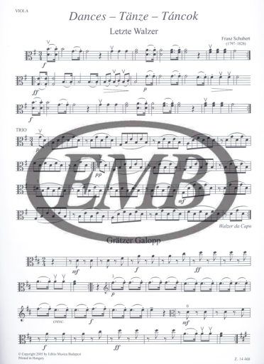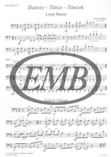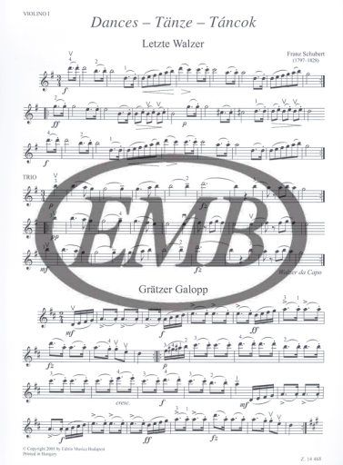 Der neue Schubert-Band der Reihe Leggiero bietet ein vielfältiges Bild über die Tänze im ersten Drittel des 19. Jahrhundert. Es kommen hier Walzer, Galopp, Menuett, Ländler, sentimentale Walzer, Ecossaise und Wiener Deutsche vor. Obwohl die Tänze für die Zeit typisch sind, sind siedennoch individuell. Der Tonumfang der Violinen überschreitet die 3. Lage, der des Violoncello den 4. Lage nicht. Die Bratsche kann durch eine 3. Violine ersetzt werden, deshalb wird diese Stimme sowohl mit Altschlüssel, als auch mit Violinschlüssel publiziert. Eine Kontrabass-stimme ad libitum ergänzt das Stimm-Material.