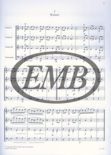 Die Leggerierissmo-Reihe von Editio Musica Budapest umfasst Stücke, mit und an welchen Kinderstreichorchester wachsen können. Jede Ausgabe ist in der ersten Lage spielbar und enthält Partitur und Stimmen (Violine 3 entspricht Viola). Die Ausgabe Schubert: Tänze enthält Tänze, die im Wien des beginnenden 19. Jahhunderts sehr beliebt waren: Ländler, Écossaises und Deutsche Tänze. Enthaltene Stimmen: 3x Violine 1, 3x Violine 2, 3x Violine 3, 2x Cello.
