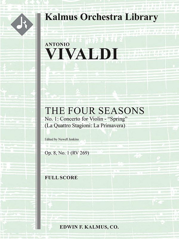 Die VIER JAHRESZEITEN-Konzerte, Antonio Vivaldis populärste Werke, sind beispielhaft sowohl als frühe, detaillierte Beispiele für das, was später als "Programmmusik" bezeichnet werden sollte, als auch wegen der Revolution der musikalischen Konzepte, die notwendig waren, um die Musik programmatisch zu gestalten, mit Darstellungen von singenden Vögeln (differenziert nach Arten), summenden Fliegen, Stürmen, fließenden Bächen, einem Schäfer und seinem bellenden Hund, Jagdgesellschaften, gejagten Parteien, betrunkenen Tänzern, gefrorenen Landschaften und warmen Winterfeuern. Vivaldi veröffentlichte die Konzerte sogar mit begleitenden Sonetten, die deutlich machten, was die Musik in der jeweiligen Jahreszeit hervorrufen sollte. Während die anderen drei Konzerte ganz und gar originell sind, entlehnt der "Frühling" Muster aus Vivaldis Sinfonia im ersten Akt seiner Oper IL GIUSTINO. Instrumentierung im Satz: Org oder Hpchd: Str (8-8-5-5-5): Solo Vn.